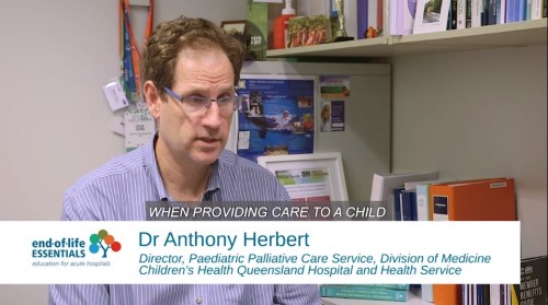 Dr Anthony Herbert Director, Paediatric Palliative Care Service, Division of Medicine Children's Health Queensland Hospital and Health Service Topic: Advice for hospital staff regarding patients and families, including siblings, involved in paediatric end-of-life care.