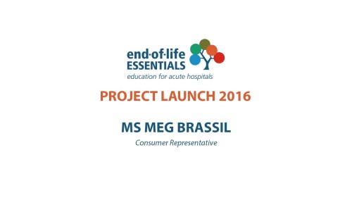 Ms Meg Brassil Topic: From a consumer perspective about the value of End-of-Life Essentials in making real improvements to the end-of-life care that patients, families and carers receive.